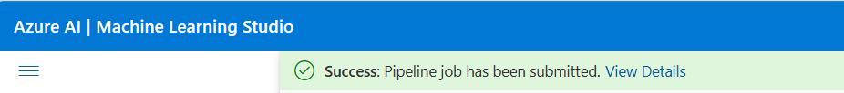 提交管道作业后,顶部会显示一条消息,其中包含指向作业详细信息的链接。 你可以选择此链接来查看作业详细信息。