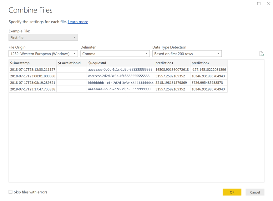 选择“确定”。 数据将预先加载。