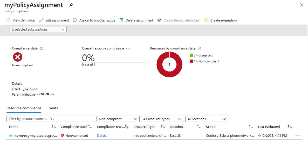 网络观察程序是一种区域服务,因此两个 deployIfNotExists 策略适用于特定区域中存在的网络安全组。 对于不同区域中的网络安全组,请在此区域创建另一个策略分配。