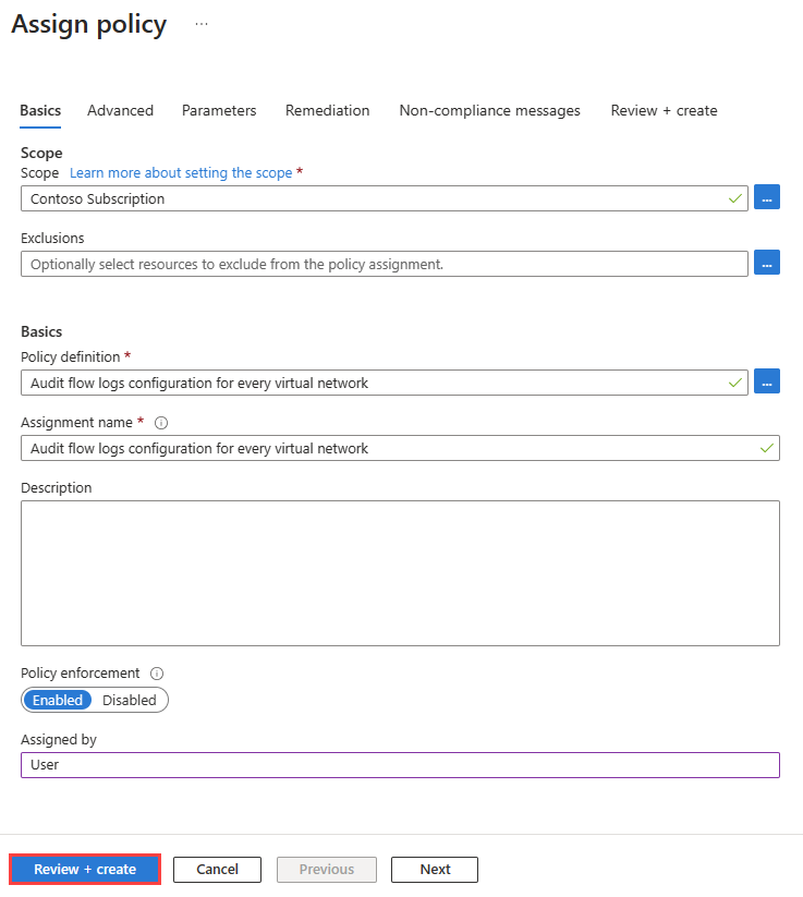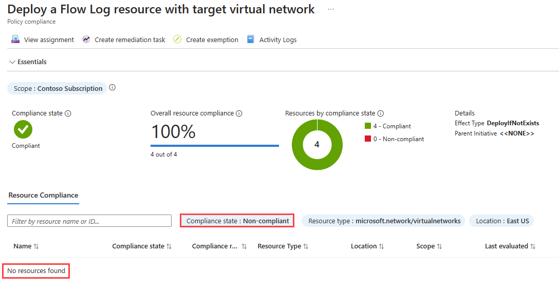策略需要一些时间来评估指定范围内的虚拟网络,并为不符合的虚拟网络部署流日志。