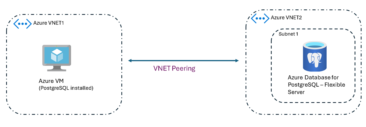 PostgreSQL installed on an Azure virtual machine (VM) in the same virtual network or in a different virtual network | VNet-integrated Azure Database for PostgreSQL flexible server in the same virtual network or in a different virtual network | Yes |