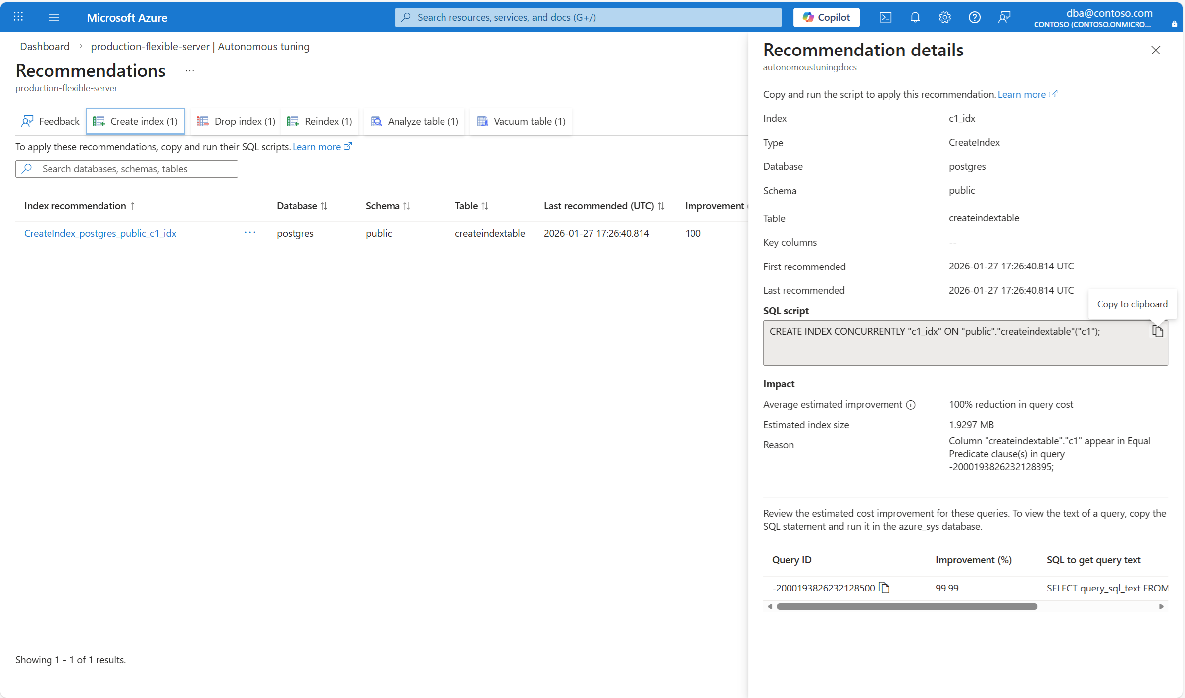 "id": "/subscriptions/<subscription_id>/resourceGroups/<resource_group>/providers/Microsoft.DBforPostgreSQL/flexibleServers/<server>/tuningOptions/index/recommendations/recommendations/<recommendation_id>",