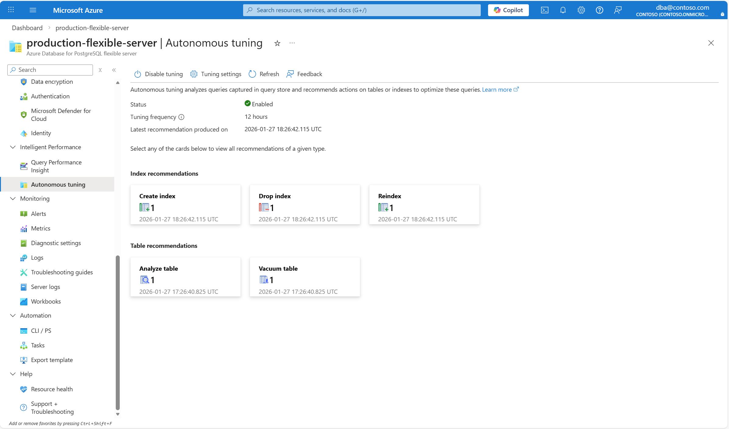 az postgres flexible-server autonomous-tuning list-table-recommendations \
