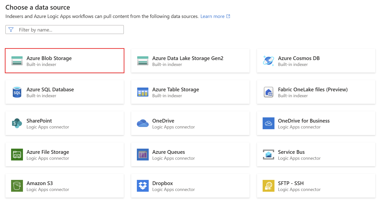 Azure AI 搜索需要连接到数据源才能进行内容引入和索引编制。 在这种情况下,数据源是 Azure 存储帐户。