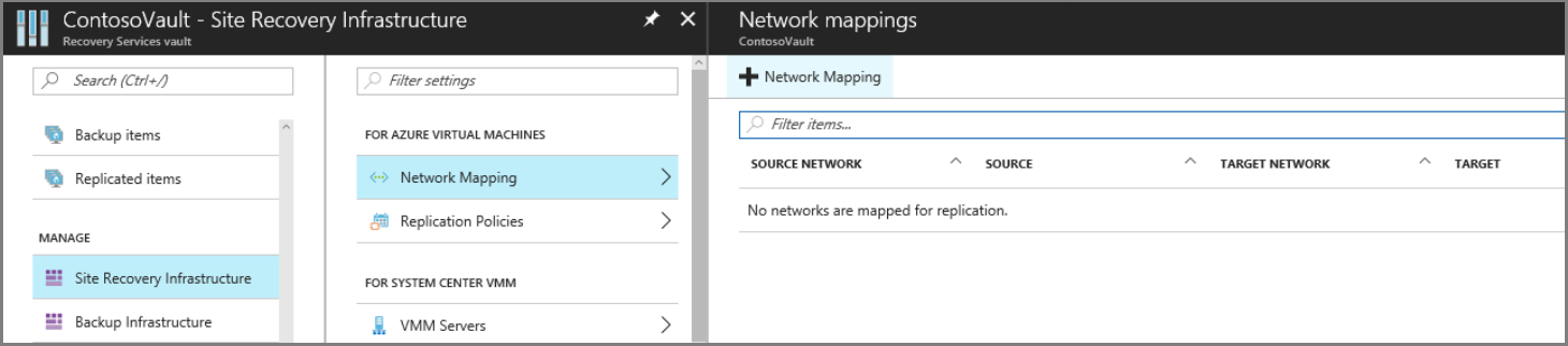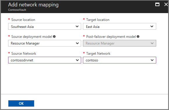 - Site Recovery 根据选择的目标,自动创建从源到目标区域以及从目标到源区域的网络映射。
