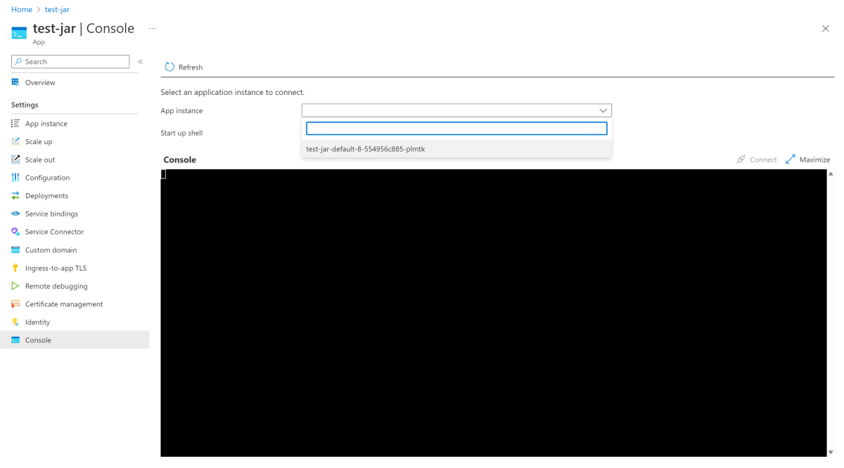 使用以下步骤通过 Azure 门户连接到应用实例。