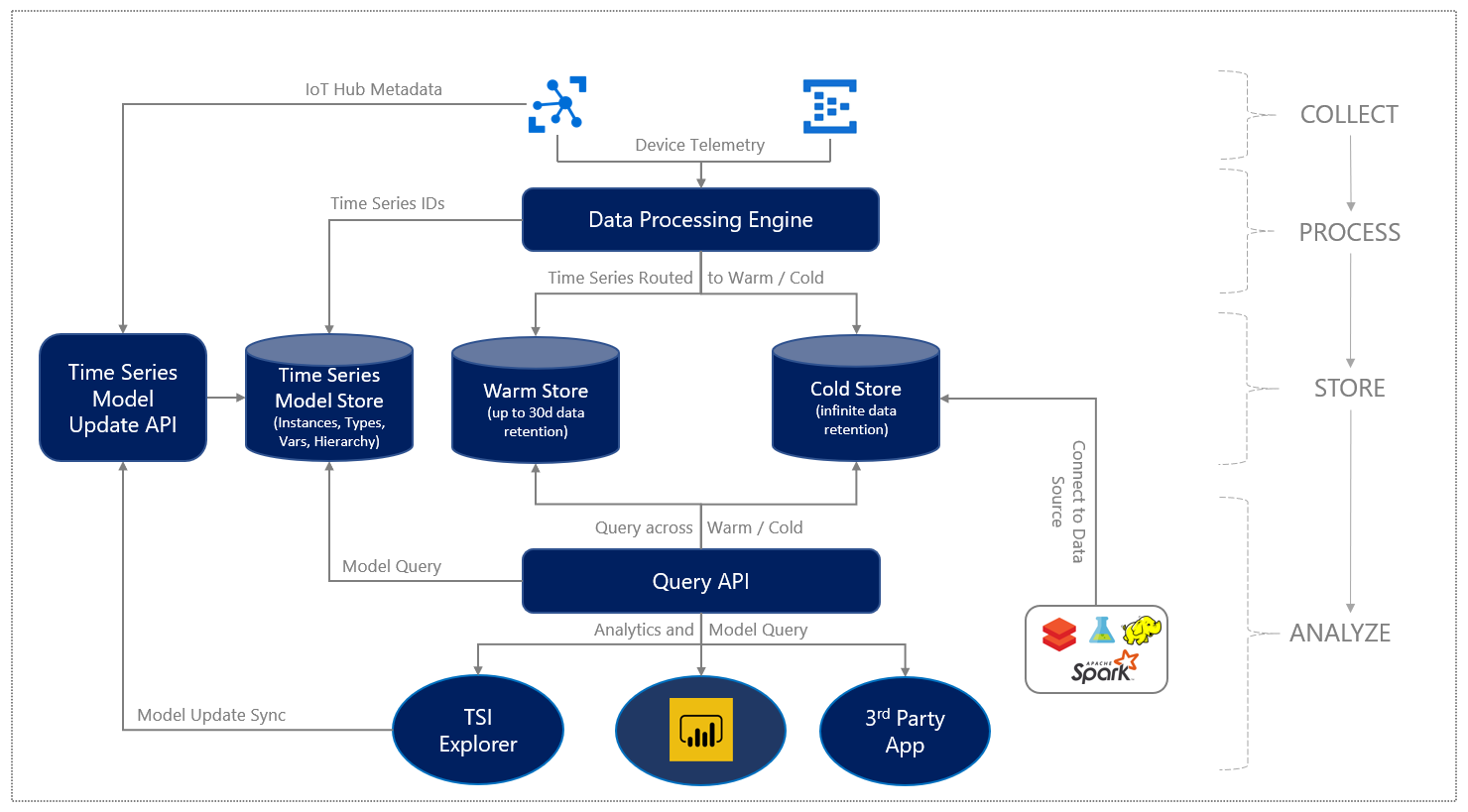 | 适用于 IoT 规模的时序数据的多层存储 | 使用用于提取数据的共享数据处理管道,可以将数据提取到热存储和冷存储中。 热存储用于进行交互式查询,而冷存储用于存储大量数据。 若要详细了解如何利用高性能的基于资产的查询,请参阅查询。 |