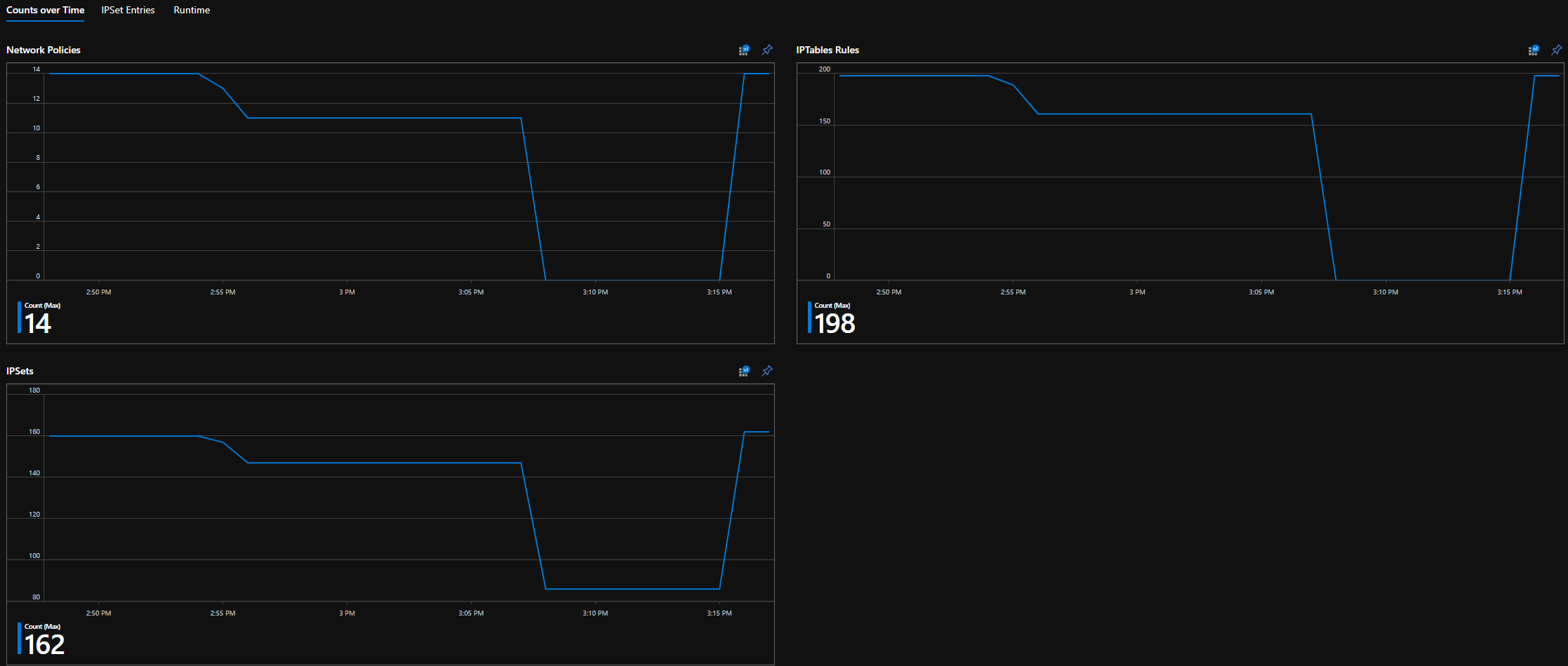 以下是容器见解 (CI) 和 Grafana 中网络策略管理器指标的一些示例仪表板。