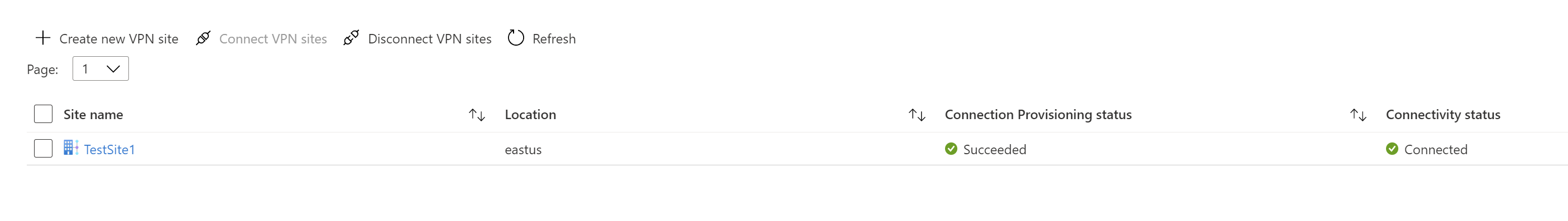 连接预配状态:这是将 VPN 站点连接到 Azure 中心 VPN 网关的连接的 Azure 资源状态。 控制平面操作成功后,Azure VPN 网关和本地 VPN 设备将继续建立连接。
