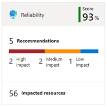 若要查看建议的详细信息(包括受影响资源),请打开某个类别的建议列表。 然后选择特定建议的“说明”或“受影响资源”。 以下屏幕截图显示了“可靠性”建议详细信息页。