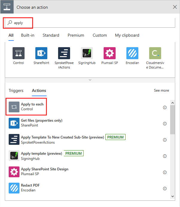 在“应用到每一个”中选择“添加操作”,然后再创建一个“应用到每一个”操作。 在文本框内进行选择,然后在出现的“动态内容”窗口中选择“文档”。