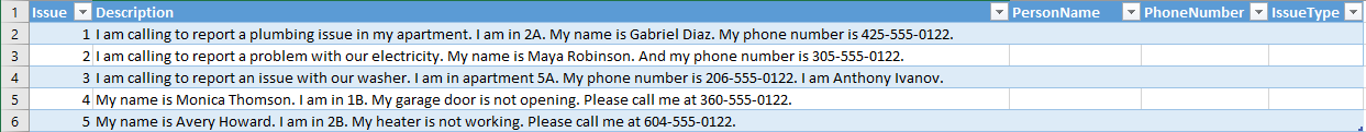- 包含租户问题的电子表格。 GitHub 上提供此教程的示例数据。