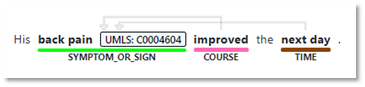 COURSE - 对另一个实体随时间变化的描述,例如病情进展(例如,改善、恶化、消退、缓解)、治疗或用药过程(例如,增加用药剂量)。