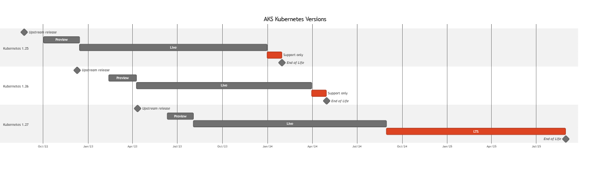 AKS Kubernetes 版本计划甘特图