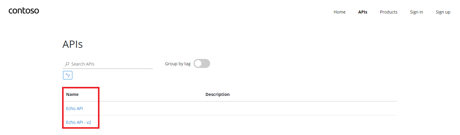例如,https://apis.contoso.com/products?api-version=v1 和 https://apis.contoso.com/products?api-version=v2 可以引用相同的 products API,但分别引用版本 v1 和 v2。