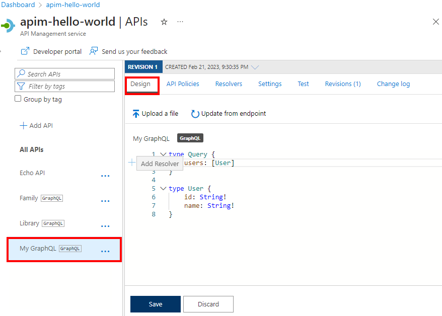 - 将 GraphQL 架构导入 Azure API 管理实例。