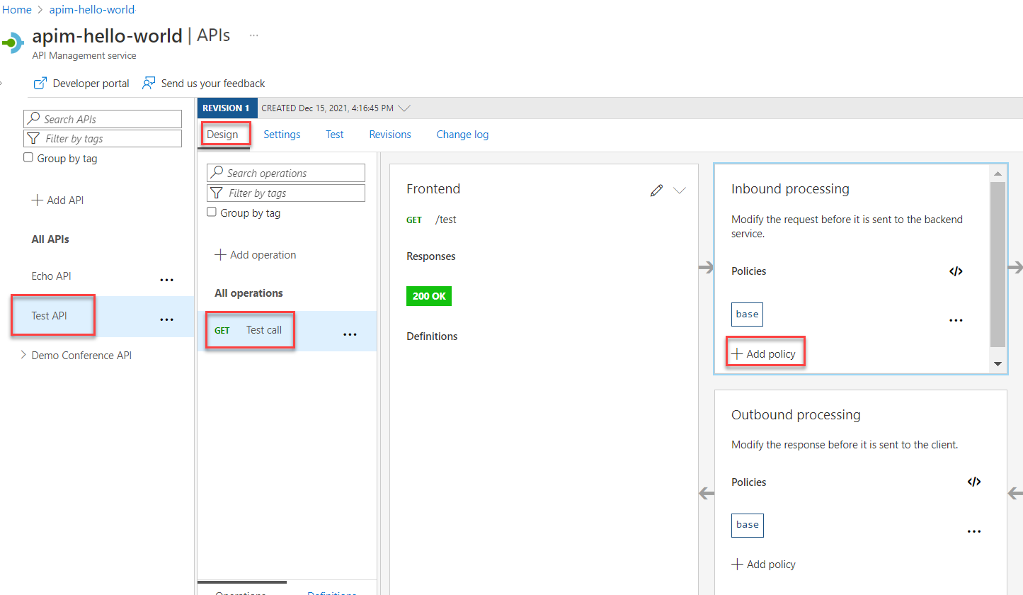 - 在 API 上设置策略,使其返回模拟响应。