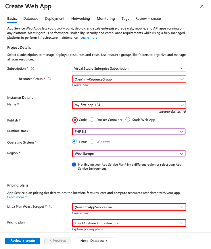 az webapp up --runtime "PHP:8.2" --os-type=linux