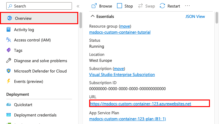 az webapp config container show --name <app-name> --resource-group msdocs-custom-container-tutorial检索 Web 应用的容器设置。 该映像在DOCKER_CUSTOM_IMAGE_NAME属性中指定。 当通过 Azure DevOps 或 Azure 资源管理器模板部署 Web 应用时,映像还可能出现在名为LinuxFxVersion的属性中。 这两个属性的作用相同。 如果 Web 应用的配置中同时存在这两个属性,则优先使用LinuxFxVersion。