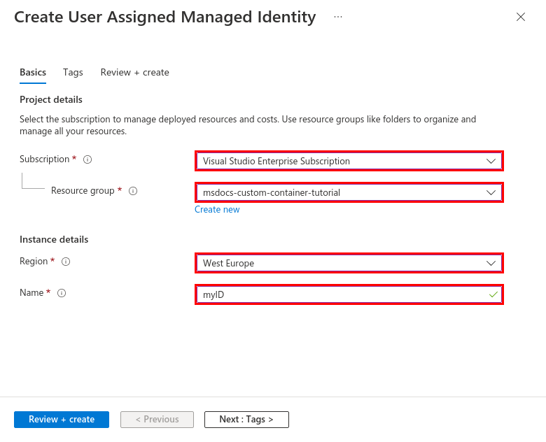 az identity create --name myID --resource-group msdocs-custom-container-tutorial