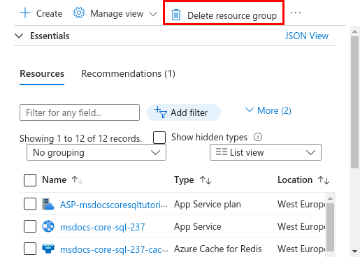 - 名称: msdocs-core-sql-XYZ。 将为你生成名为 msdocs-core-sql-XYZ_group 的资源组。