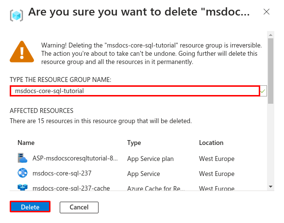 az webapp connection delete sql --connection defaultConnector --resource-group <group-name> --name <app-name>