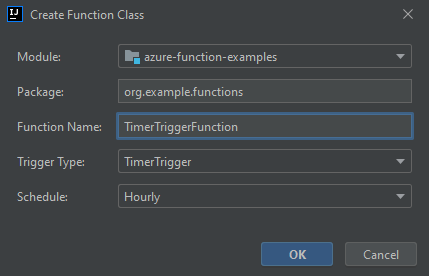 右键单击 org.example.functions 包,然后选择“新建”->“Azure 函数类”。