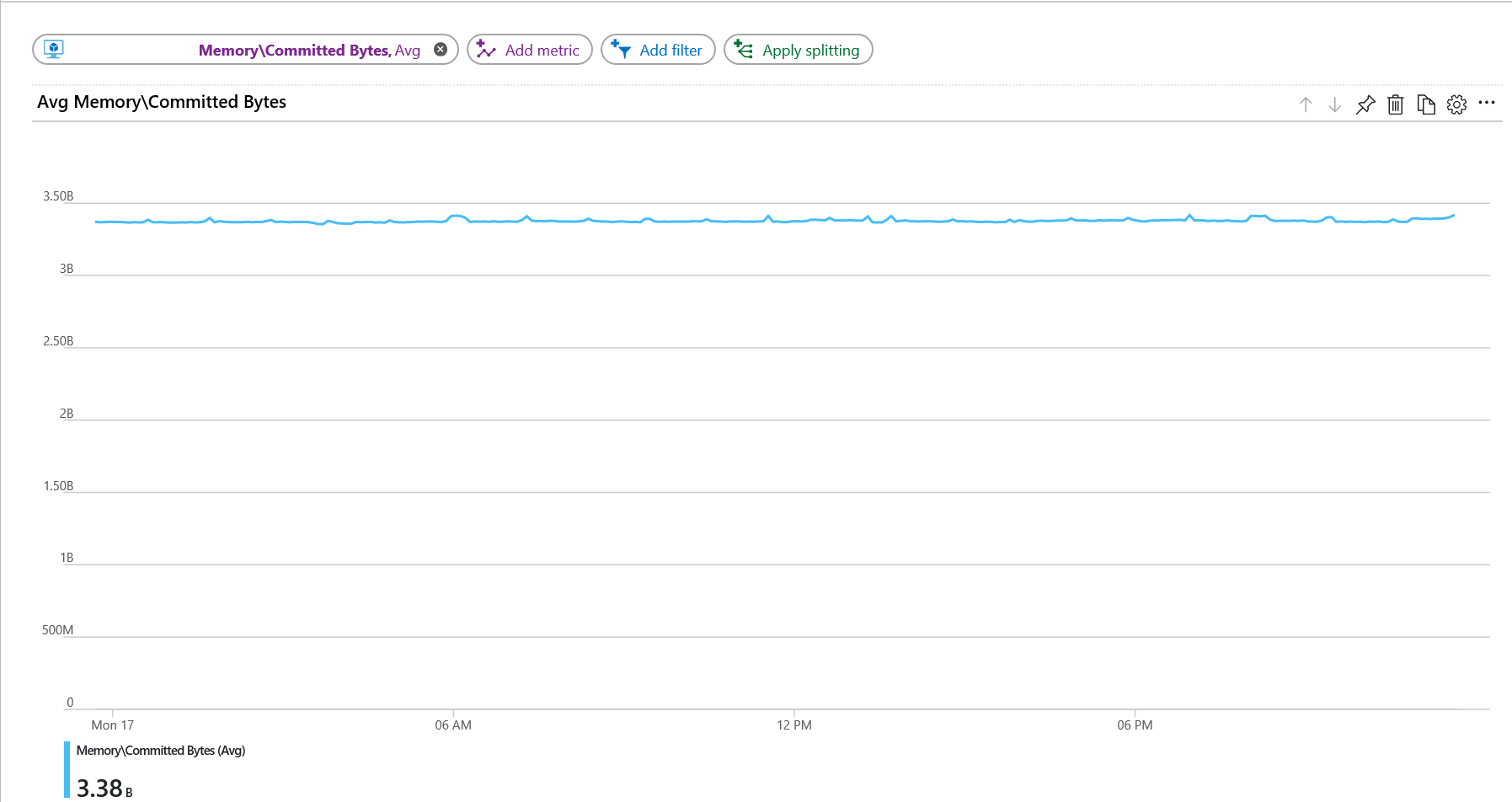 在指标下拉菜单中,选择“内存\已提交的使用字节数”。