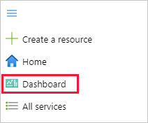在 Azure 门户左侧的菜单下拉列表中,选择“仪表板”。