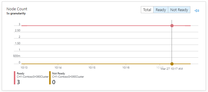 节点将报告为“就绪”或“未就绪”状态,并且会统计它们以创建总计数。 这两个聚合的结果将绘制成图表,例如,你可以从中了解节点是否陷入故障状态。 使用“未就绪”聚合可以快速查看群集中当前处于“未就绪”状态的节点数。