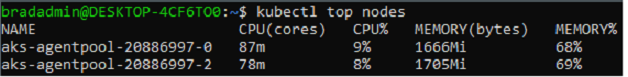 这两个性能图表分别对应于调用 kubectl top nodes 并将 CPU% 和 MEMORY% 列的结果捕获到相应的图表。