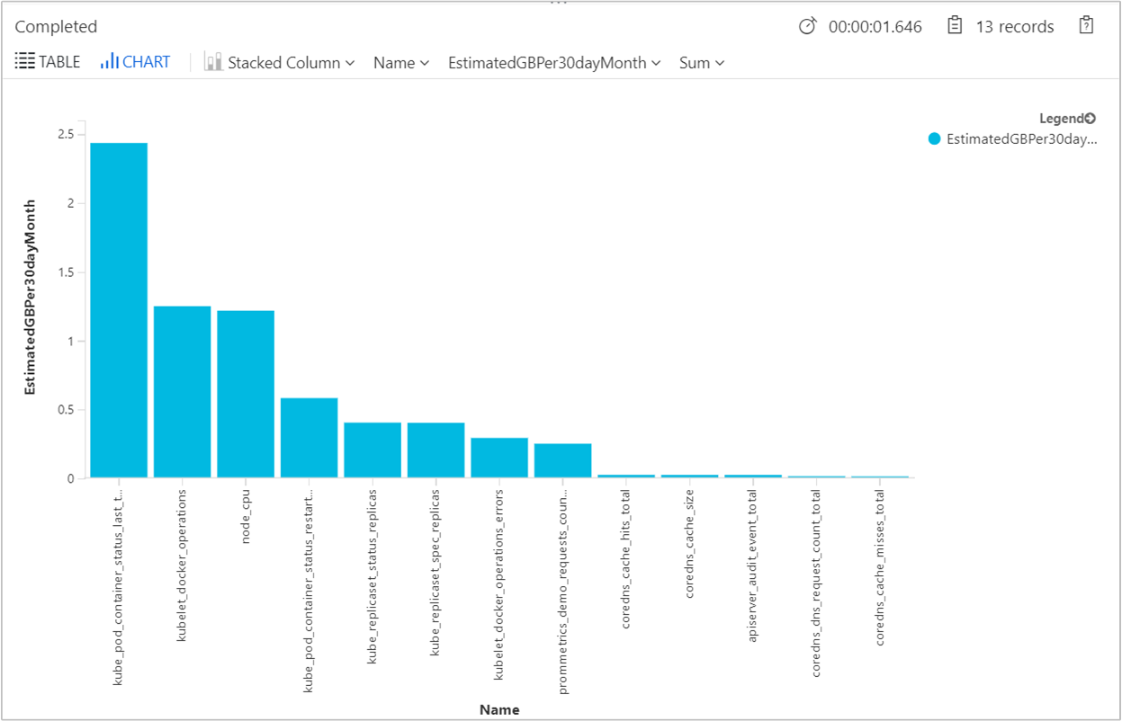 | summarize EstimatedGBPer30dayMonth = (sum(_BilledSize) / (1024 * 1024 * 1024)) * 30 by Name