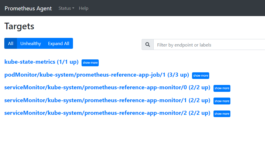 每个 ama-metrics-* Pod 都有端口 9090 上提供的 Prometheus 代理模式用户界面。