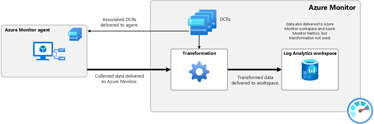 该示意图显示了 Azure Monitor 代理使用 DCR 的基本操作。