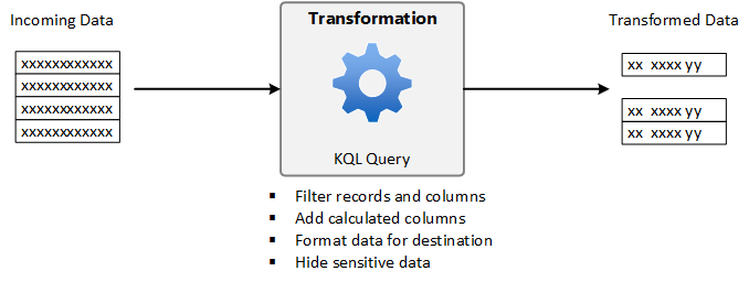 转换 是 DCR 中包含的 KQL 查询 ,该查询针对收到的每个记录运行。 它们让你能够在传入数据存储在 Azure Monitor 中或发送到另一个目标之前对其进行修改。 可以筛选不需要的数据以降低引入成本、删除不应保留在 Log Analytics 工作区中的敏感数据,或设置数据格式,以确保其与目标架构匹配。 转换还支持高级方案,例如将数据发送到多个目标或使用其他信息扩充数据。