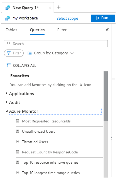 打开 Log Analytics 时可用的查询由当前查询范围确定。 例如:
