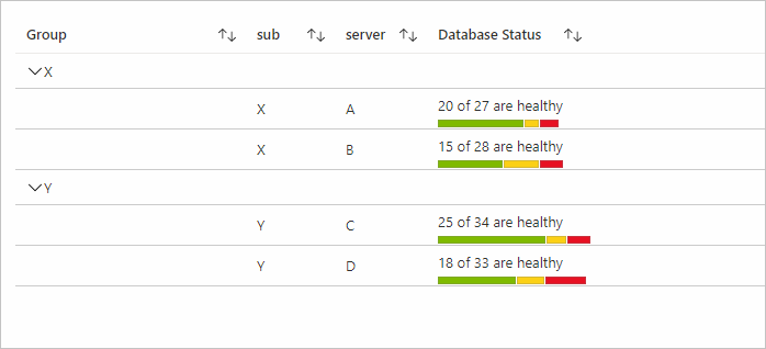 下图显示数据库状态的组合条。 它显示处于联机、脱机和正在恢复状态的服务器数量。