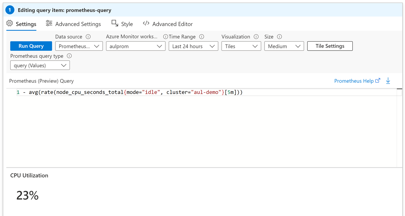 借助适用于 Prometheus 的 Azure Monitor 托管服务,可收集 Kubernetes 群集的 Prometheus 指标。 若要查询 Prometheus 指标,请从数据源下拉列表中选择“Prometheus”,后跟指标在 Azure Monitor 工作区中的存储位置以及 PromQL 查询的 Prometheus 查询类型。