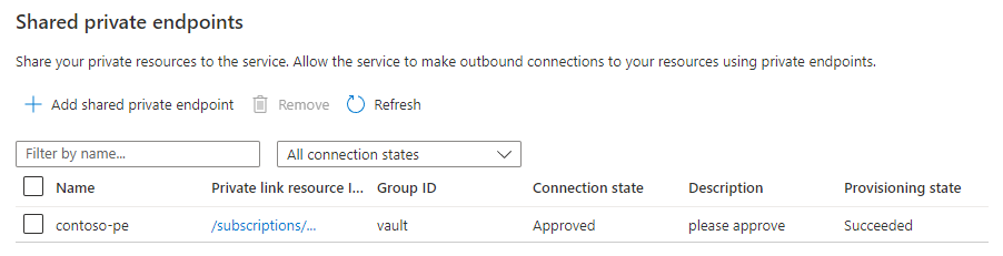 "privateLinkResourceId": "/subscriptions/00000000-0000-0000-0000-000000000000/resourceGroups/contoso/providers/Microsoft.KeyVault/vaults/contoso-kv",