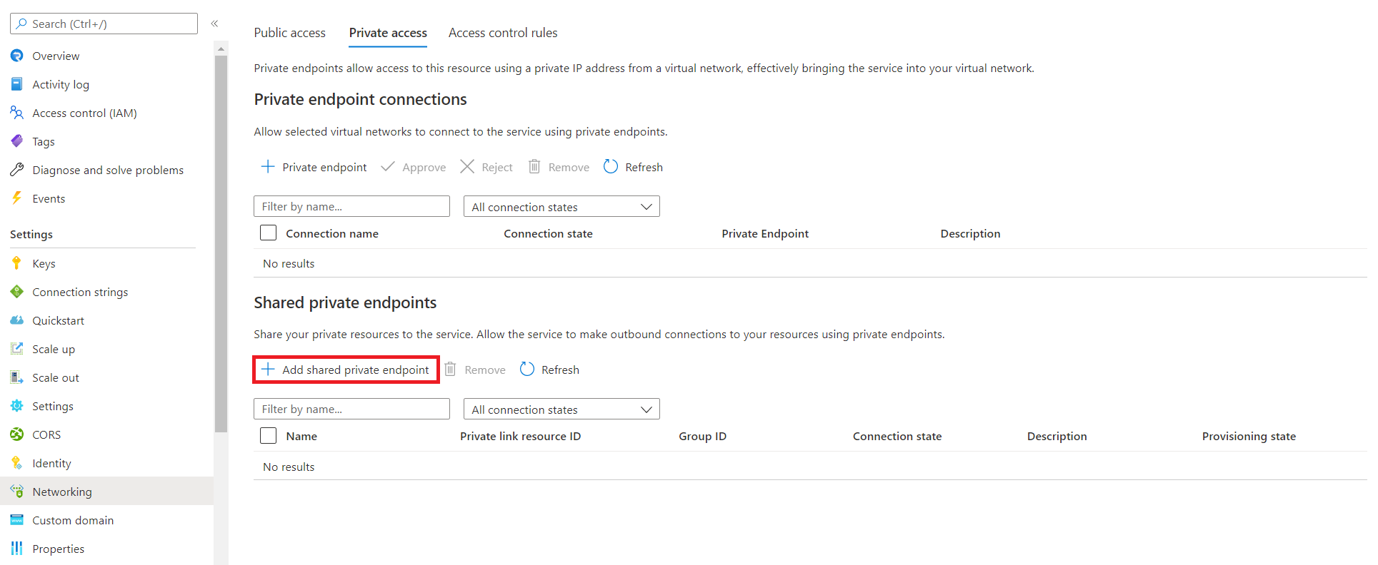 在“共享专用终结点”部分选择“添加共享专用终结点”。