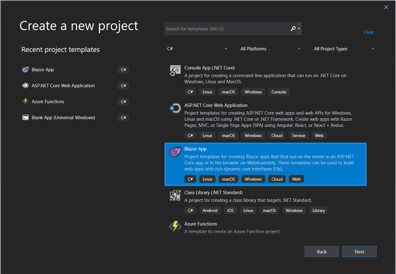 dotnet new命令来创建项目:dotnet new blazorserver -o BlazorChat