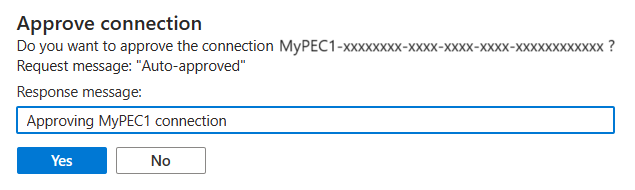 显示如何在 Azure 门户中批准 PEC 的屏幕截图。