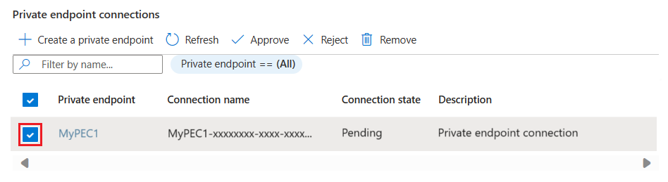 4. 如果没有专用终结点,请使用“创建专用终结点”按钮创建一个终结点。 否则,请通过选择它在列表中选择单个 PEC。