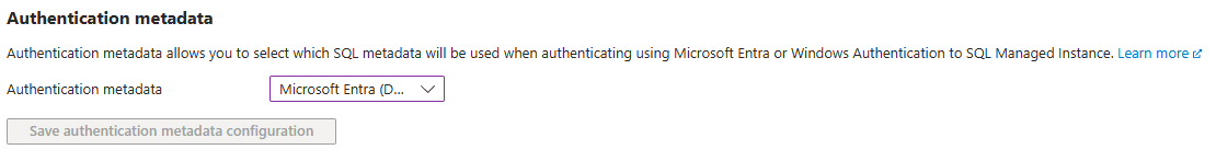 Windows 身份验证元数据模式允许用户在 Azure SQL 托管实例中使用 Windows 身份验证或Microsoft Entra 身份验证(使用 Windows 主体元数据)。 此模式仅适用于 SQL 托管实例。 Windows 身份验证元数据模式不适用于 Azure SQL 数据库。