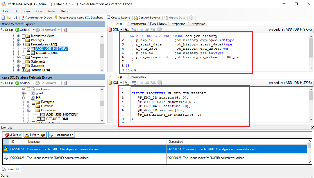 有关详细的代码评估和转换,请继续使用适用于 Oracle 的 SSMA。