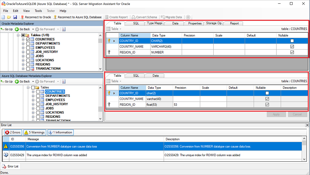 借助 SSMA for Oracle,可查看数据库对象和数据、评估数据库是否适合迁移、将数据库对象迁移到 SQL 数据库,最后将数据迁移到数据库。