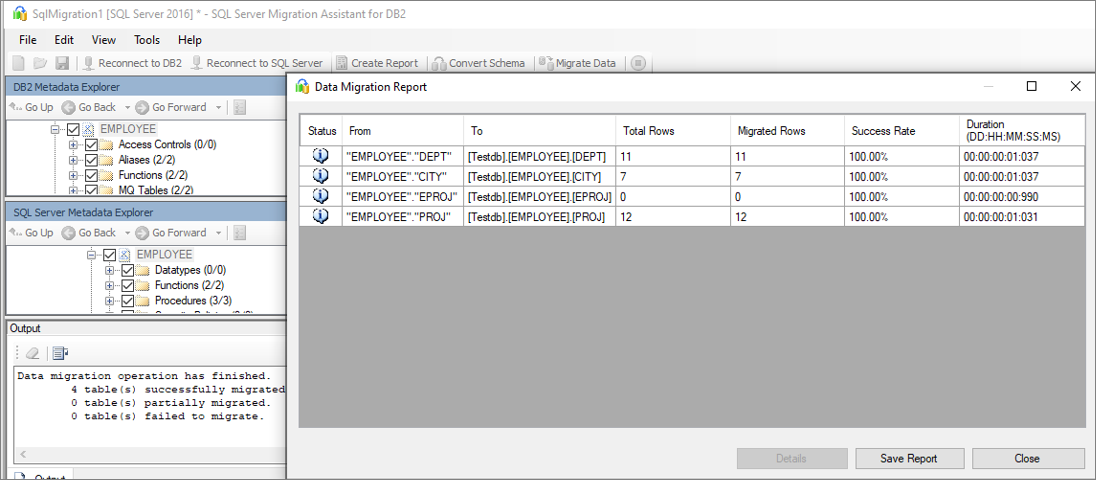 查看 HTML 报表,了解转换统计信息以及任何错误或警告。 另外,还可以在 Excel 中打开报表以获取 Db2 对象的清单,以及执行架构转换所需的工作量。 报表的默认位置在 SSMAProjects 内的报表文件夹中。