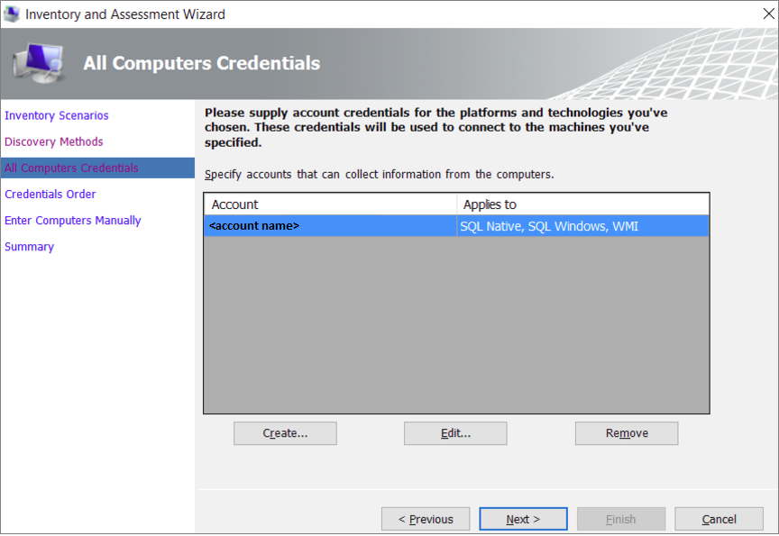 为要发现的每台计算机输入凭据。 可对每台计算机/机器使用唯一凭据,也可使用“所有计算机凭据”列表。