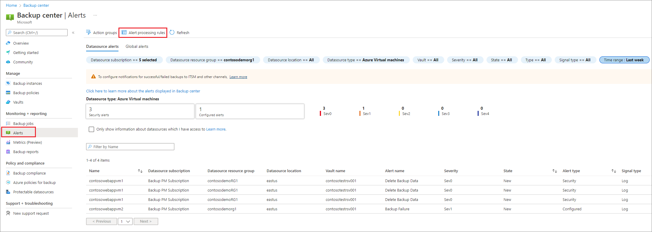 本文介绍如何为 Azure 备份配置和管理基于 Azure Monitor 的警报通知。 可以使用这些警报监视备份项的运行状况,并在需要时采取纠正措施。