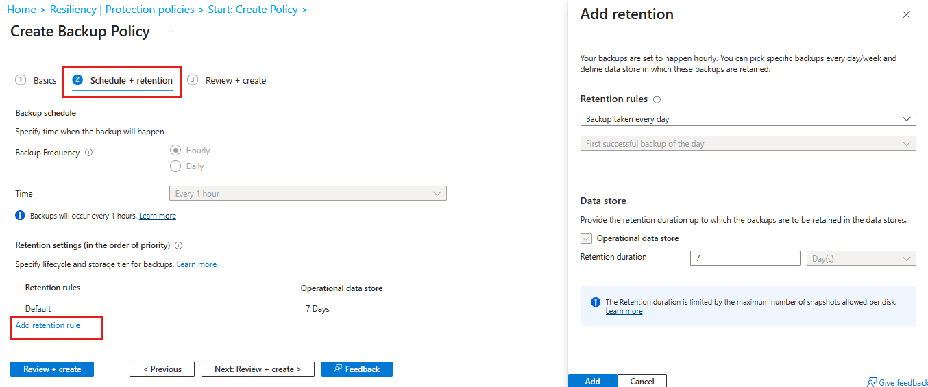 在 “备份策略 ”窗格中,选择“ + 添加”。